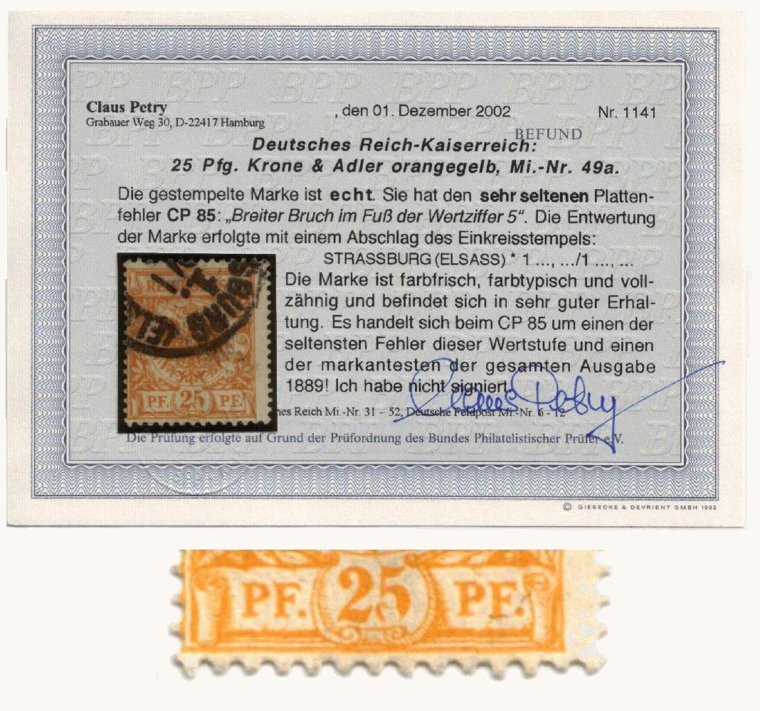 | Prüfer: | Petry, Claus (BPP (Bund Philatelistischer Prüfer)) |