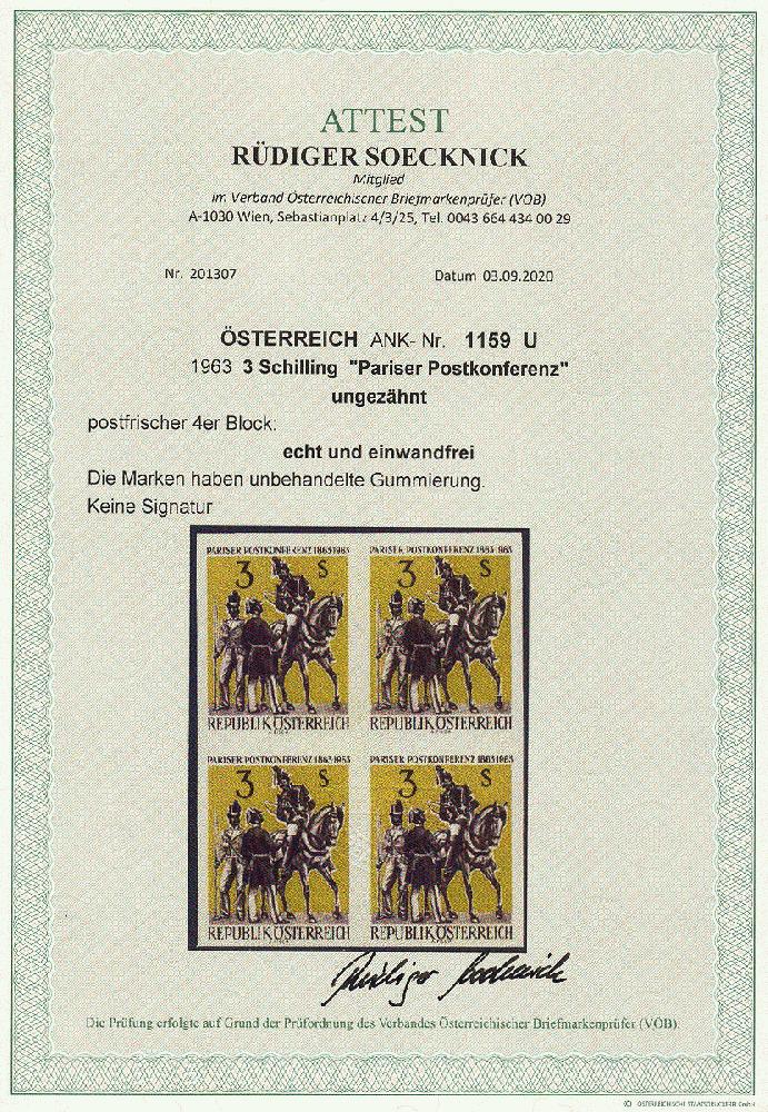| Zusatzinformationen und Suchstichworte: | 16. Auktion Stilus 6. August 2023 Los 842 Österreich 2. Republik Österreich, 1963, ANK-Nr. 1159 U (Michel-Nr. 1129 U), 'Pariser Postkonferenz', 3 Schilling, im 4er-Block, ungezähnt, postfrisch **, einwandfreie Erhaltung Ausruf 140,00 EUR |
