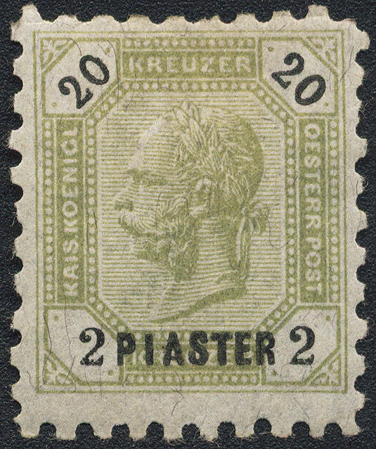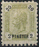 | Zusatzinformationen und Suchstichworte: | 16. Auktion Stilus 6. August 2023 Los 1004 Österreich Post in der Levante Österreich, Levante, 1891, ANK-Nr. 28 I B, 2 Piaster auf 20 Kreuzer, 'olivgrün', in Linienzähnung 9 1/4, ungebraucht *, einwandfreie Erhaltung Ausruf 50,00 EUR |
