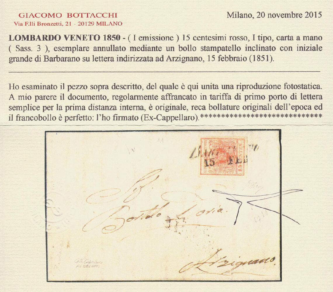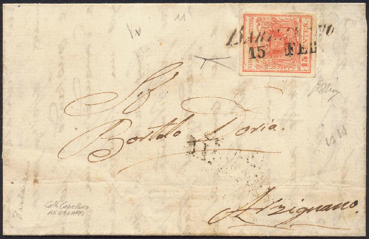 | Zusatzinformationen und Suchstichworte: | 16. Auktion Stilus 6. August 2023 Los 1377 Österreich Lombardei Venetien Österreich, LV, 1850, Venetien, Barbarano, ANK-Nr. 3 H IIIa, 15 Centesimi, 'rot', seltener Zweizeiler von; 'BARBARANO', Müller 22a = 100 Punkte, Sassone 11 Punkte, auf Faltbrief nach Arzignano, einwandfrei Ausruf 110,00 EUR |