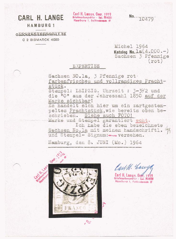 | Zusatzinformationen und Suchstichworte: | Sachsen Mi-Nr. 1a Herkunft: Auktionshaus Grobe, 189. Auktion (Oktober 1985), Los 3550, Ausruf 2.200,00 DM, Zuschlag 2.100,00 DM. Weiteres Attest zu dieser Briefmarke: https://www.briefmarken-atteste.de/atteste/zeigen/2257 |