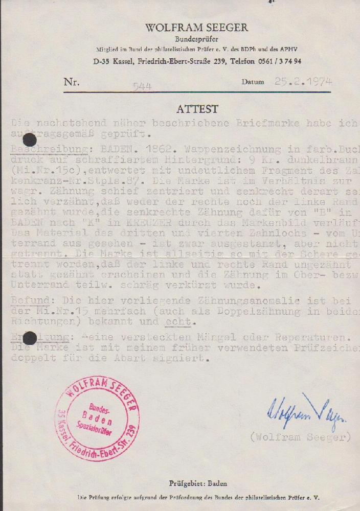 | Prüfer: | Seeger, Wolfram (BPP (Bund Philatelistischer Prüfer)) |