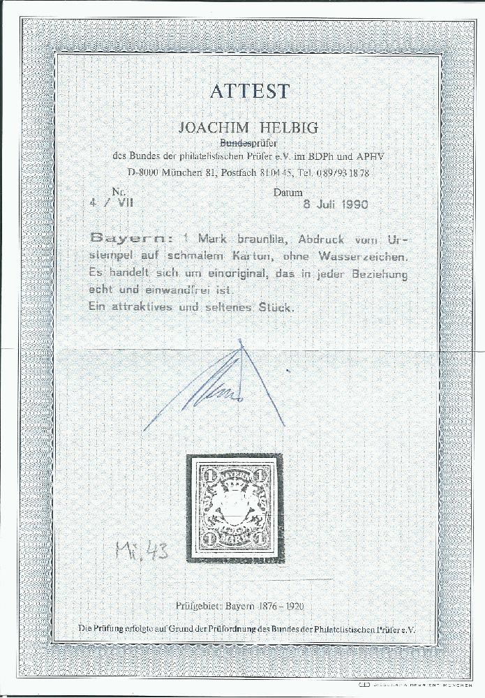 | Zusatzinformationen und Suchstichworte: | Rauhut & Kruschel - 219. Auktion 29. Juli 2023 Los 270 Altdeutschland Bayern 1 Mk. braunlila, seltener Probeabzug vom Urstempel auf Kartonpapier ohne Wasserzeichen Ausruf 220,00 EUR |