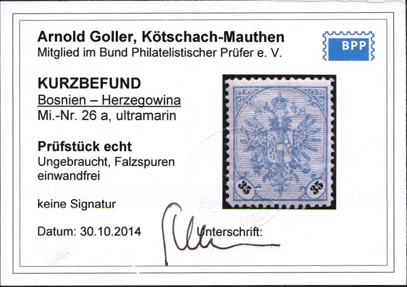 | Prüfer: | Goller, Arnold (BPP (Bund Philatelistischer Prüfer)) |