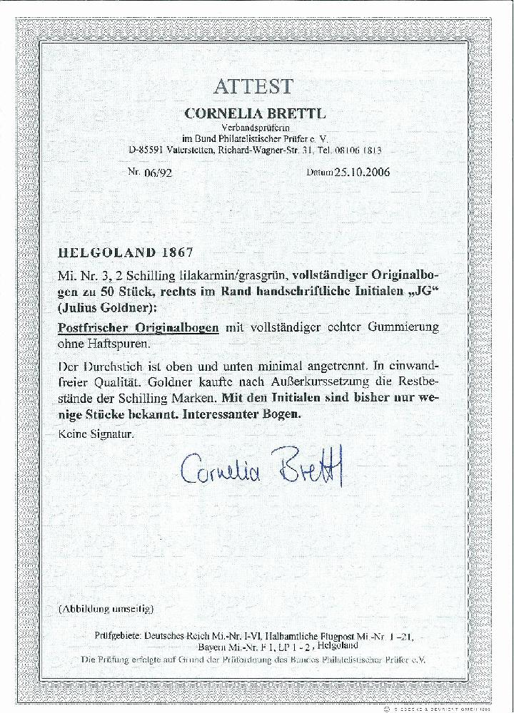 | Prüfer: | Brettl, Cornelia (BPP (Bund Philatelistischer Prüfer)) |