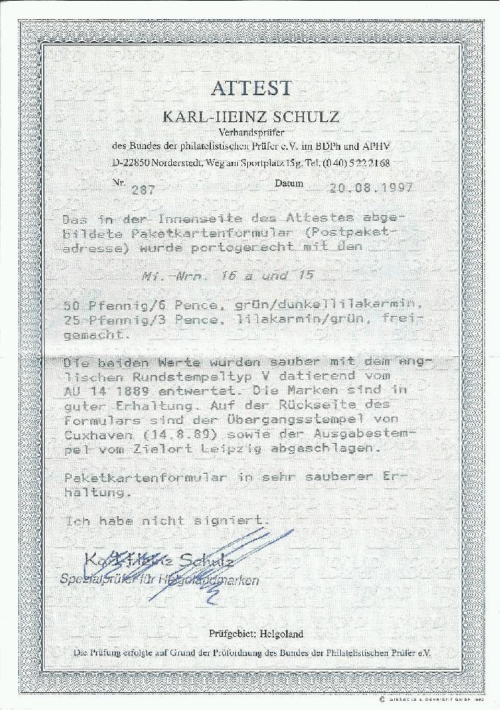 | Prüfer: | Schulz, Karl-Heinz (BPP (Bund Philatelistischer Prüfer)) |