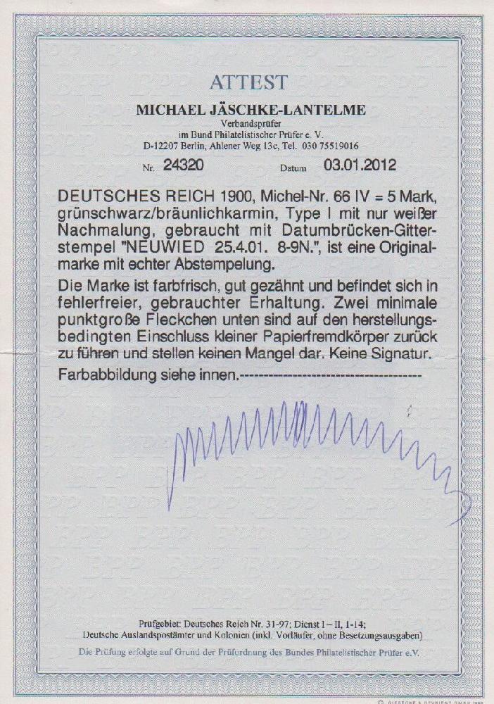 | Prüfgebiet: | Deutsches Reich 1871 - 1918 (Mi-Nr. 1 - 106) |