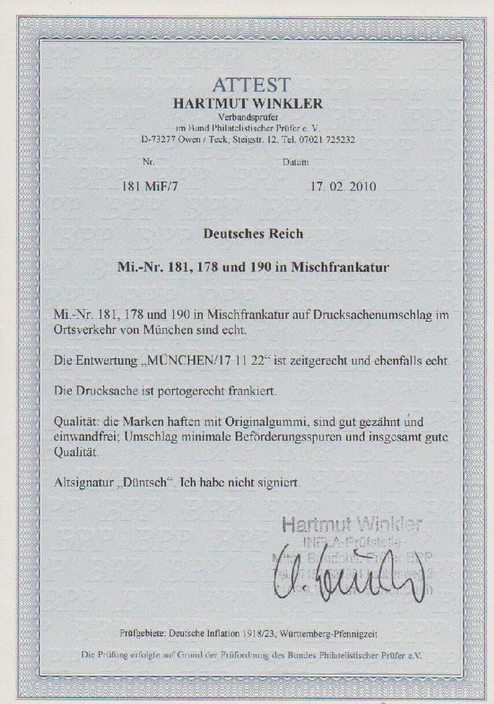 | Prüfgebiet: | Deutsches Reich 1919 - 1923 (Mi-Nr. 107 - 343) |