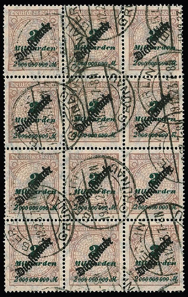 | Zusatzinformationen und Suchstichworte: | Rauhut & Kruschel - 219. Auktion 29. Juli 2023 Los 3106 Deutsches Reich 2 Milld. Mk. im seltenen und überdurchschnittlich sauber gestempelten Zwölferblock mit Stempel "Berlin-Grunau". Michel der losen Marken 1800,- ++, Attest Tworek "einwandfrei" Ausruf 450,00 EUR |