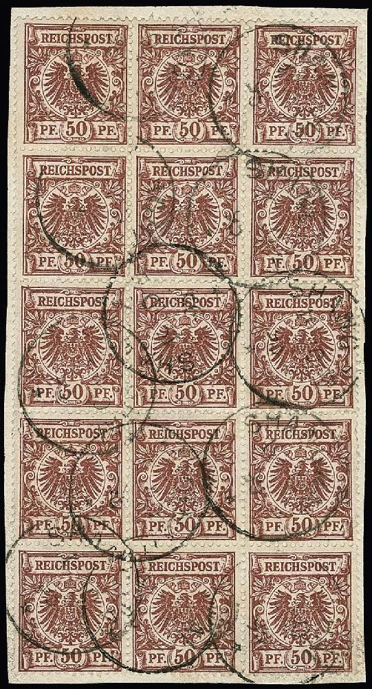 | Zusatzinformationen und Suchstichworte: | Rauhut & Kruschel - 219. Auktion 29. Juli 2023 Los 3243 Deutsche Auslandspost China, Vorläufer Vorläufer Krone-Adler 50 Pfg. braunrot im sehr seltenen 15er-Block auf Leinen-Briefstück mit K1 "Shanghai" aus 1895, leichte schräge Faltspur durch drei Marken, ansonsten gute Erhaltung dieser seltenen Großeinheit (Mi. lose Marken 1350,- ++) Ausruf 450,00 EUR |