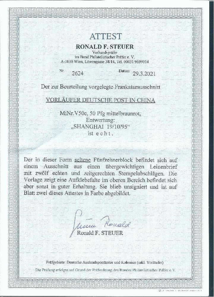 | Prüfgebiet: | Deutsche Auslandspostämter China |