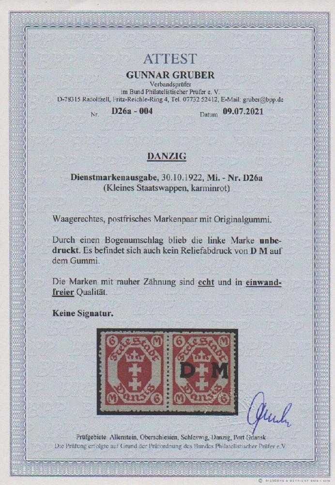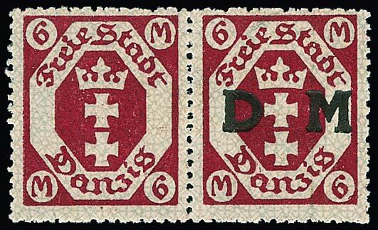 | Zusatzinformationen und Suchstichworte: | Rauhut & Kruschel - 219. Auktion 29. Juli 2023 Los 3388 Danzig Dienstmarke 6 Mk. im postfrischen Paar, dabei linke Marke ohne, rechte mit Aufdruck, so im Michel nicht gelistet! Ausruf 200,00 EUR |