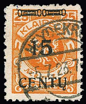 | Zusatzinformationen und Suchstichworte: | Rauhut & Kruschel - 219. Auktion 29. Juli 2023 Los 3403 Memel 15 a.25 Mk. mit Aufdruckfehler VI, "Wertziffer 5 von 15 dicker" klar gestempelt "Heydekrug". Nach meiner Meinung ist die Marke einwandfrei, eine unter UV reagierende Zahnspitze durch Fremdsubstanz kann schon herstellungsbedingt sein. Dieser Aufdruckfehler kommt nur bei einer kleinen Teilauflage auf den Feldern 46-50 vor und echt gestempelt sind wahrscheinlich keine handvoll existent! Ausruf 800,00 EUR |