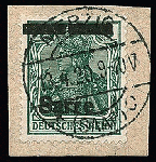 | Zusatzinformationen und Suchstichworte: | Rauhut & Kruschel - 219. Auktion 29. Juli 2023 Los 3417 Saar 5 Pfg., Überdruckplatte II, Abart "Balken oben, Schrift unten", auf tadellosem Briefstück ("Merzig"), Marke von Feld 100 (Aufdruck-Besonderheit S, "zweites r von Sarre rechts oben abgeschnitten") Ausruf 100,00 EUR |