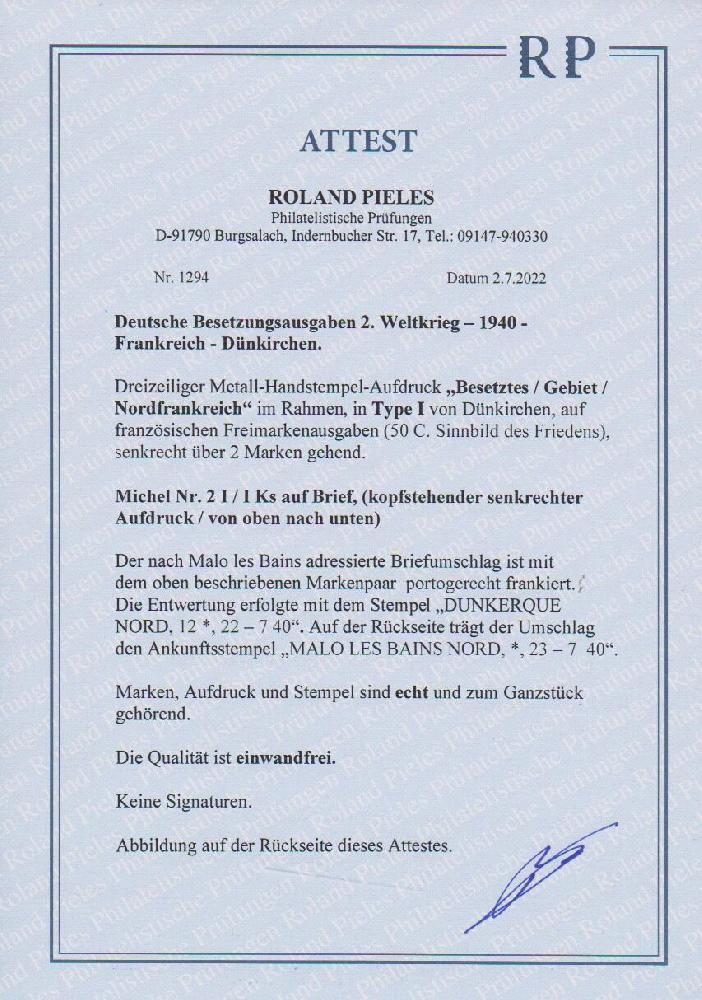 | Prüfgebiet: | Deutsche Besetzung WK 2 Frankreich Dünkirchen |
