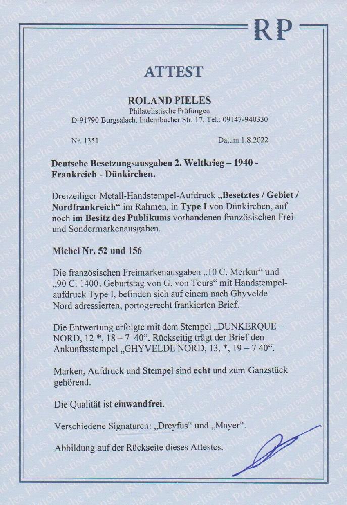 | Prüfgebiet: | Deutsche Besetzung WK 2 Frankreich Dünkirchen |