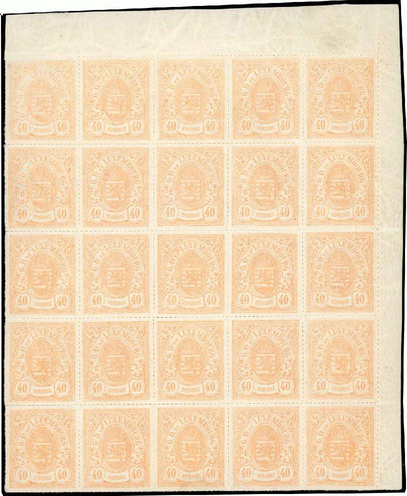| Zusatzinformationen und Suchstichworte: | Es existiert von dieser Marke ein kompletter Bogen. Dies ist bis jetzt die zweitgrösste bekannte Eineit dieser Marke. Einzig bekannter 25er Block. |