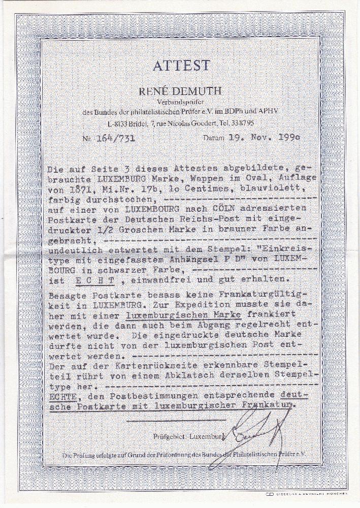 | Prüfer: | Demuth, René (BPP (Bund Philatelistischer Prüfer)) |