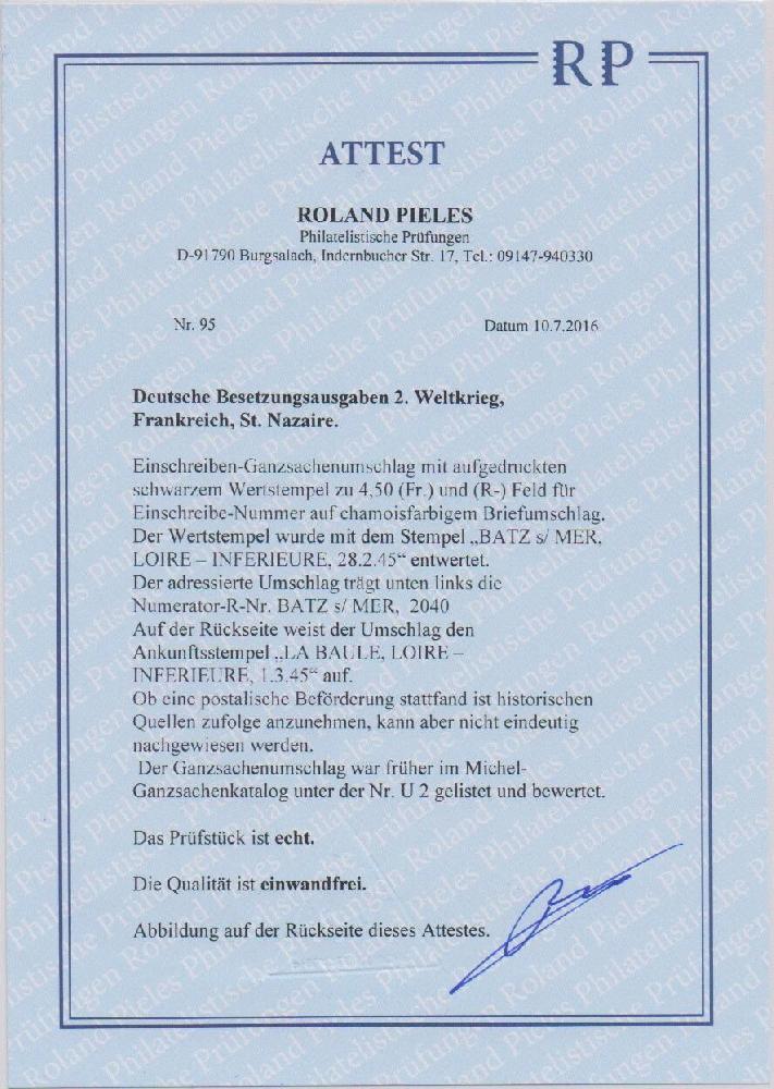 | Prüfgebiet: | Deutsche Besetzung WK 2 Frankreich St. Nazaire |