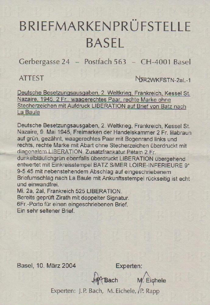 | Prüfgebiet: | Deutsche Besetzung WK 2 Frankreich St. Nazaire |