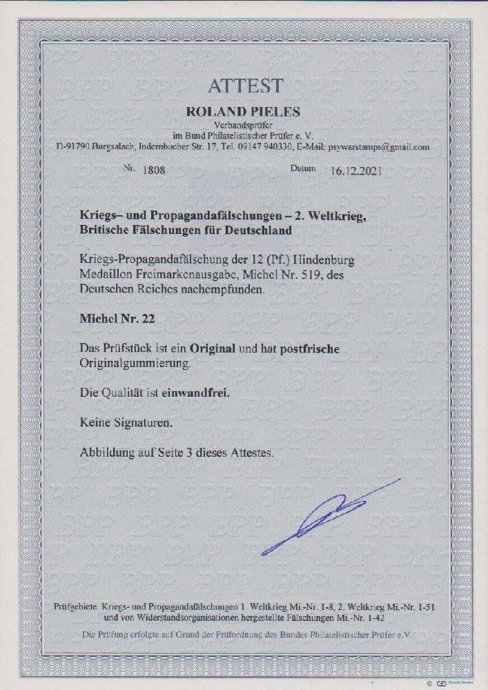 | Prüfgebiet: | Deutsches Reich Kriegs- und Propagandafälschungen 1939-1945 |