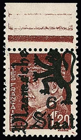 | Zusatzinformationen und Suchstichworte: | Rauhut & Kruschel - 219. Auktion 29. Juli 2023 Los 3628 Kriegs und Propagandafälschungen II. WK Fälschungen französischer Widerstandsorganisationen für das von Deutschland besetzte Frankreich, "6" Pfg. auf 1,20 Fr. Petain, "breite 6" im Aufdruck, tadellos postfrisch vom Oberrand, eine nur in wenigen Exemplaren bekannte Marke Ausruf 1.750,00 EUR |