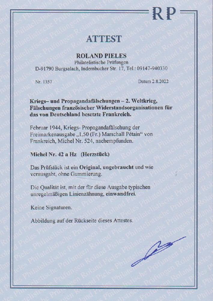 | Prüfgebiet: | Deutsches Reich Kriegs- und Propagandafälschungen 1939-1945 |