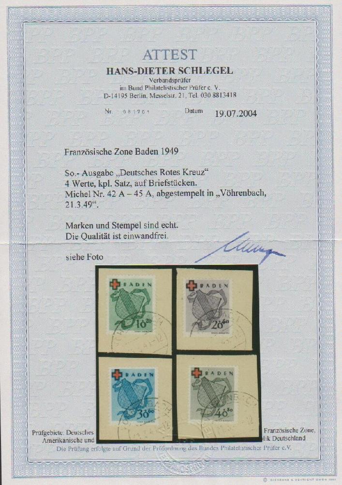 | Zusatzinformationen und Suchstichworte: | Rauhut & Kruschel - 219. Auktion 29. Juli 2023 Los 3833 Französische Zone Baden Rotkreuz auf tadellosen Briefstücken Ausruf 100,00 EUR |