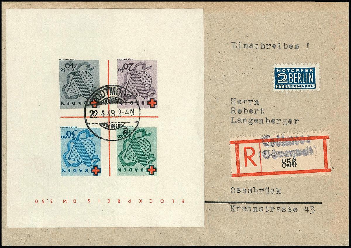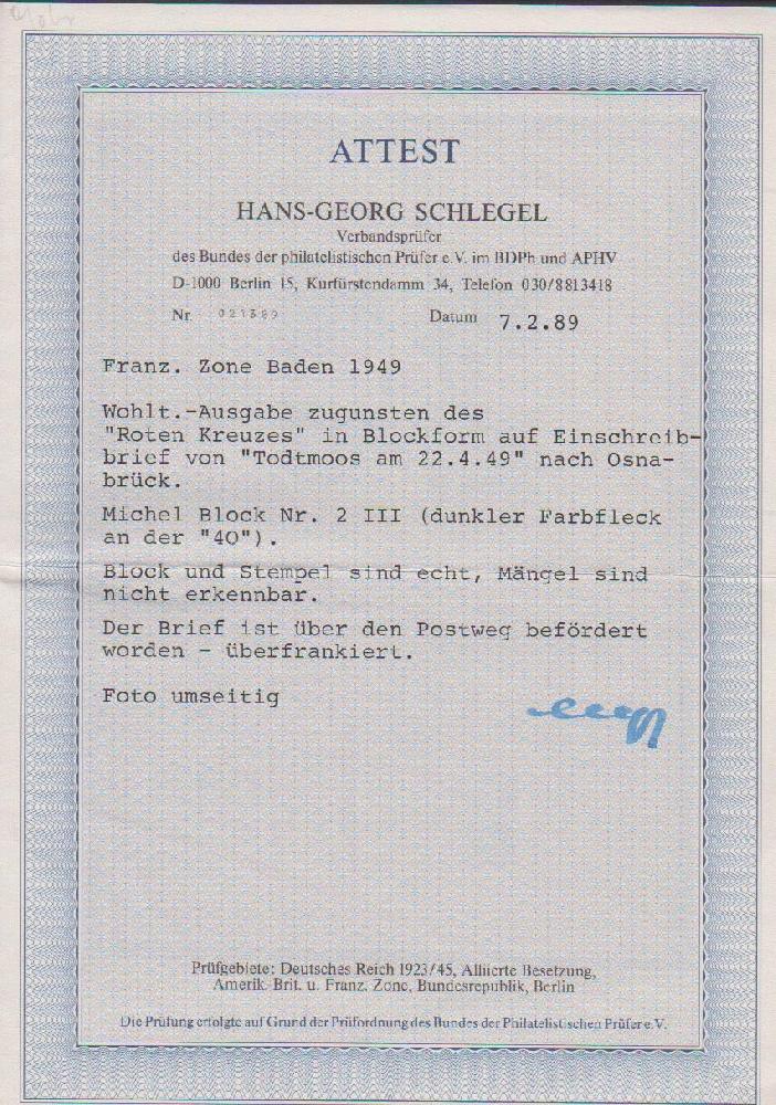 | Zusatzinformationen und Suchstichworte: | Rauhut & Kruschel - 219. Auktion 29. Juli 2023 Los 3837 Französische Zone Baden Rotkreuz-Block in Type II/II tadellos auf überfrankiertem R-Brief aus Todtmoos Ausruf 350,00 EUR |