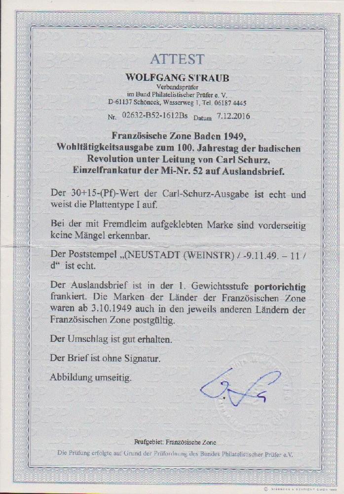| Prüfer: | Straub, Wolfgang (BPP (Bund Philatelistischer Prüfer)) |
