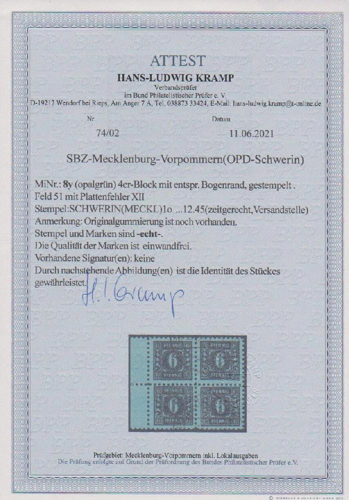 | Prüfgebiet: | Alliierte Besetzung SBZ Mecklenburg-Vorpommern |