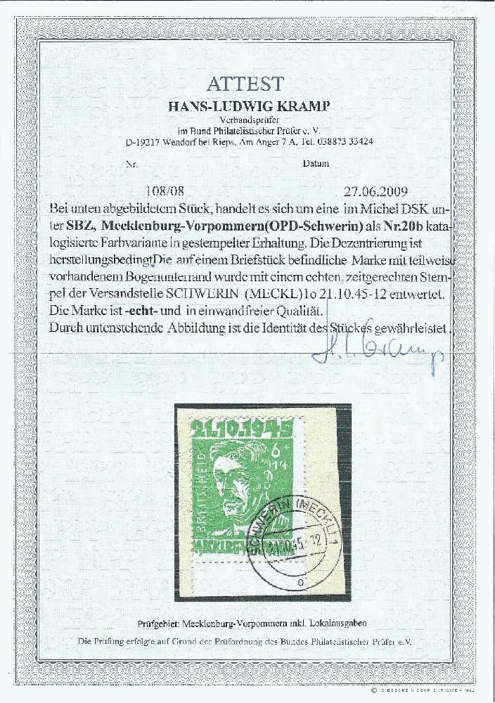 | Prüfer: | Kramp, Hans-Ludwig (BPP (Bund Philatelistischer Prüfer)) |