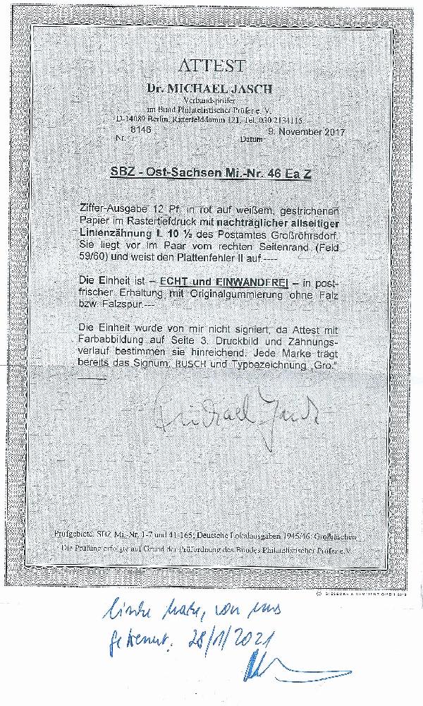 | Prüfgebiet: | Alliierte Besetzung SBZ Ost-Sachsen |