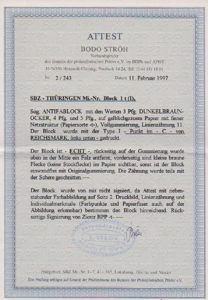 | Prüfgebiet: | Alliierte Besetzung SBZ Thüringen Blocks |