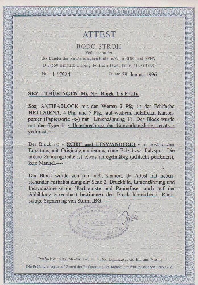 | Prüfgebiet: | Alliierte Besetzung SBZ Thüringen Blocks |