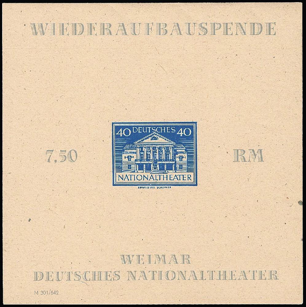| Zusatzinformationen und Suchstichworte: | Rauhut & Kruschel - 219. Auktion 29. Juli 2023 Los 4311 Sowjetische Zone Theater-Block in der sehr seltenen Variante "ohne Durchstich und nur Druck der 40 Pfg.-Marke sowie der Randinschrift" postfrisch. Attest Jasch "einwandfrei ... Es sind nur wenige Exemplare dieser Blockabart bekannt". Mi. 5000,- Ausruf 1.500,00 EUR |