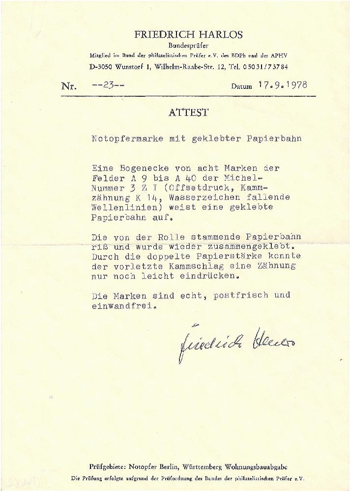 | Prüfer: | Harlos, Friedrich (BPP (Bund Philatelistischer Prüfer)) |