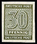 | Zusatzinformationen und Suchstichworte: | Rauhut & Kruschel - 219. Auktion 29. Juli 2023 Los 4341 Sowjetische Zone 30 Pfg. bräunlicholiv, Wz. "X", in der guten ungezähnten Variante postfrisch (leichte Fingerspur) Ausruf 180,00 EUR |
