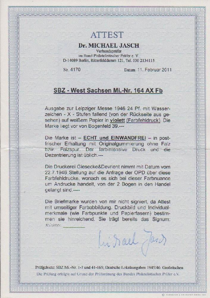 | Prüfgebiet: | Alliierte Besetzung SBZ West-Sachsen |