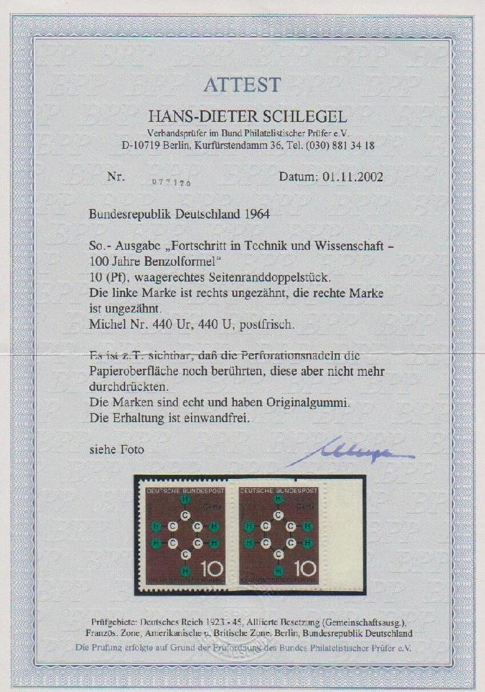 | Zusatzinformationen und Suchstichworte: | Rauhut & Kruschel - 219. Auktion 29. Juli 2023 Los 4866 Bundesrepublik Deutschland 10 Pfg. Technik im postfrischen rechten Randpaar, rechte Marke vollständig ungezähnt, linke nur rechts ungezähnt (die Perforationsnadeln berühren noch die Papieroberfläche, ohne diese durchzudrücken), seltene Kombination Ausruf 400,00 EUR |