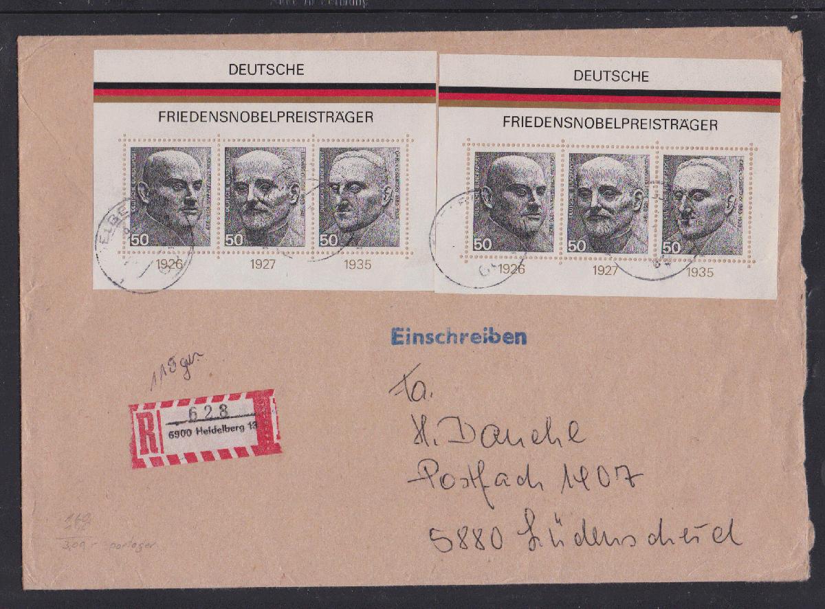 | Zusatzinformationen und Suchstichworte: | Rauhut & Kruschel - 219. Auktion 29. Juli 2023 Los 4887 Bundesrepublik Deutschland Nobelpreisträger-Block per zwei als ungewöhnliche Mehrfach-Frankatur auf portoger. R-Brief aus Heidelberg (über 100gr.) Ausruf 60,00 EUR |