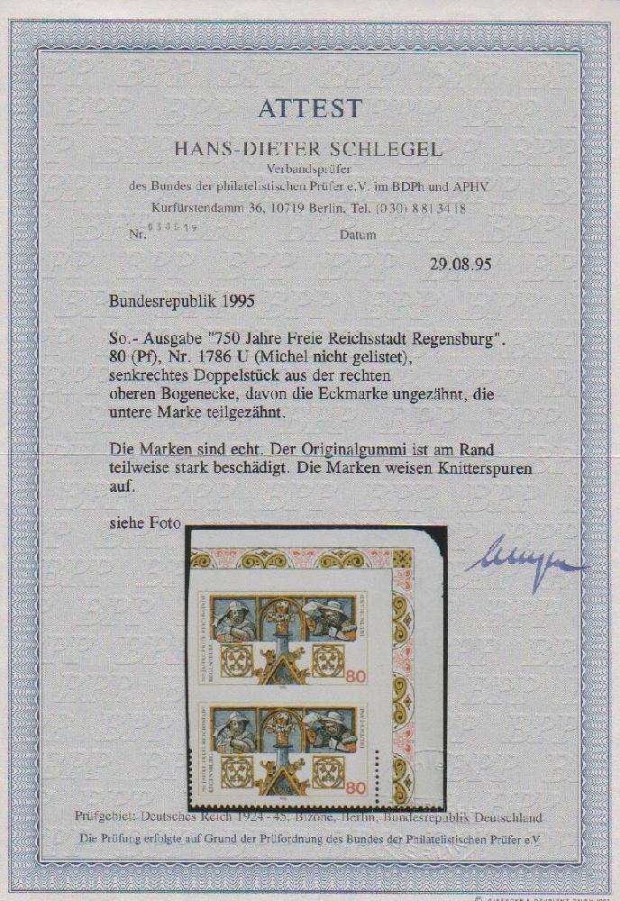 | Prüfer: | Schlegel, Hans-Dieter (BPP (Bund Philatelistischer Prüfer)) |