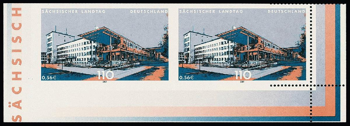 | Zusatzinformationen und Suchstichworte: | Rauhut & Kruschel - 219. Auktion 29. Juli 2023 Los 4928 Bundesrepublik Deutschland 110 Pfg. Sächsischer Landtag im postfrischen Eckrandpaar, linke Marke vierseitig ungezähnt, rechte links waagerecht zum großen Teil ungezähnt, als Paar selten! Ausruf 300,00 EUR |