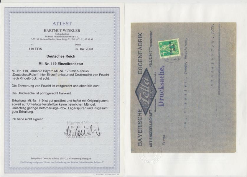| Prüfgebiet: | Deutsches Reich 1919 - 1923 (Mi-Nr. 107 - 343) |