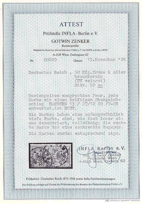 | Prüfgebiet: | Deutsches Reich 1871 - 1918 (Mi-Nr. 1 - 106) |