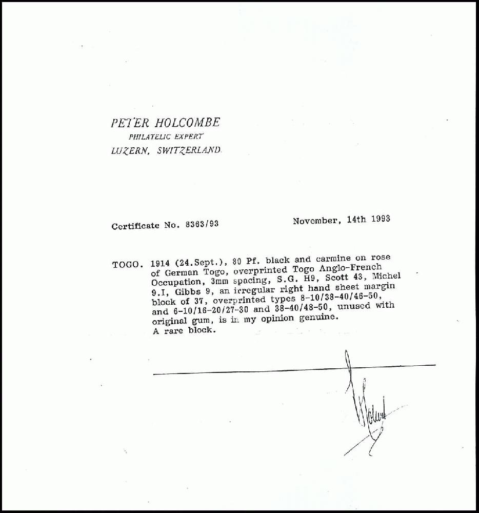 | Prüfgebiet: | Deutsche Kolonien Togo Britische Besetzung |