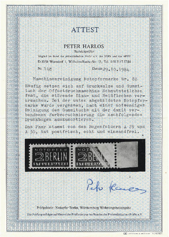 | Prüfgebiet: | Alliierte Besetzung Notopfer- und Wohnungsbaumarken |