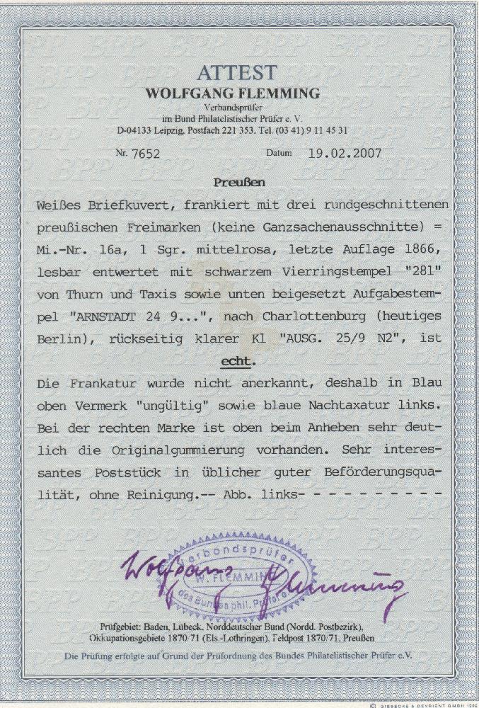 | Zusatzinformationen und Suchstichworte: | 3 rundgeschnittene 1 Sgr.-Marken in Thurn & Taxis-Gebiet verwendet |