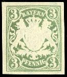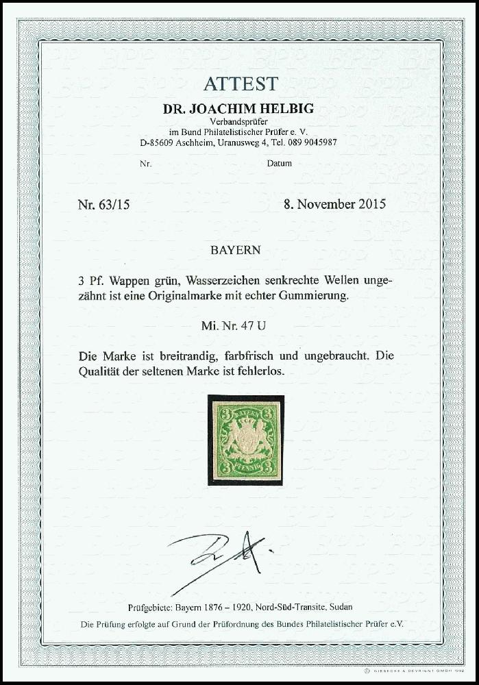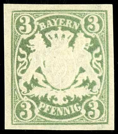 | Zusatzinformationen und Suchstichworte: | Dr. Reinhard Fischer 193. Auktion 21. - 22. Juli 2023 Los 61 Altdeutschland Bayern 3 Pfennig Wappen, grün, Abart "ungezähnt", tadellos ungebraucht, Fotoattest Dr. Helbig BPP: "Die Qualität der seltenen Marke ist fehlerlos." Ausruf 150,00 EUR |