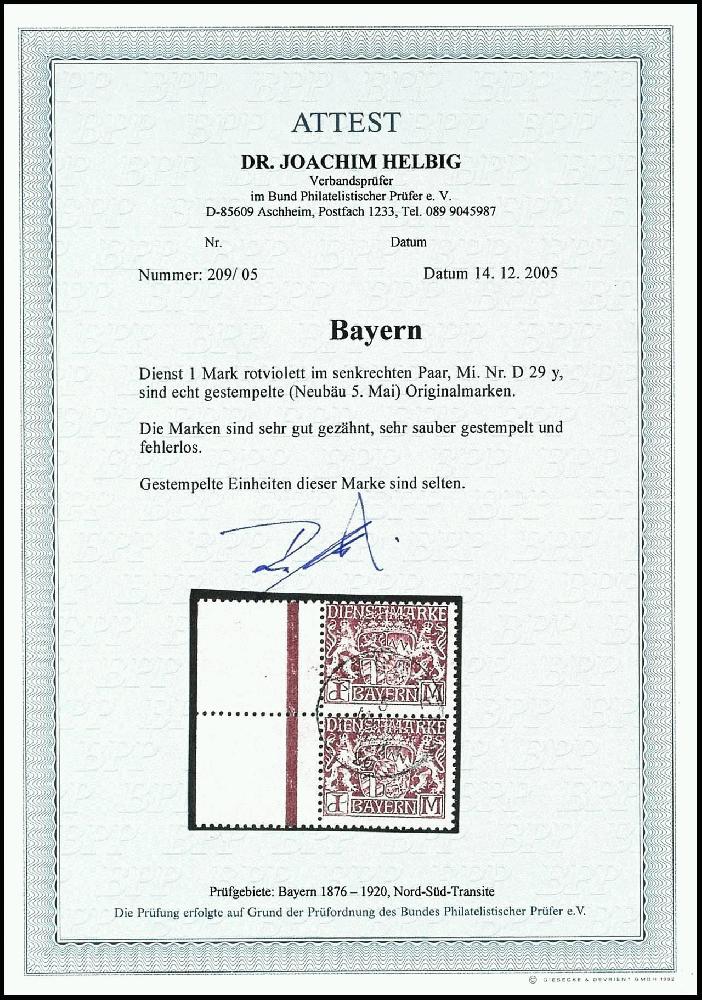 | Prüfgebiet: | Altdeutschland Bayern Dienstmarken |